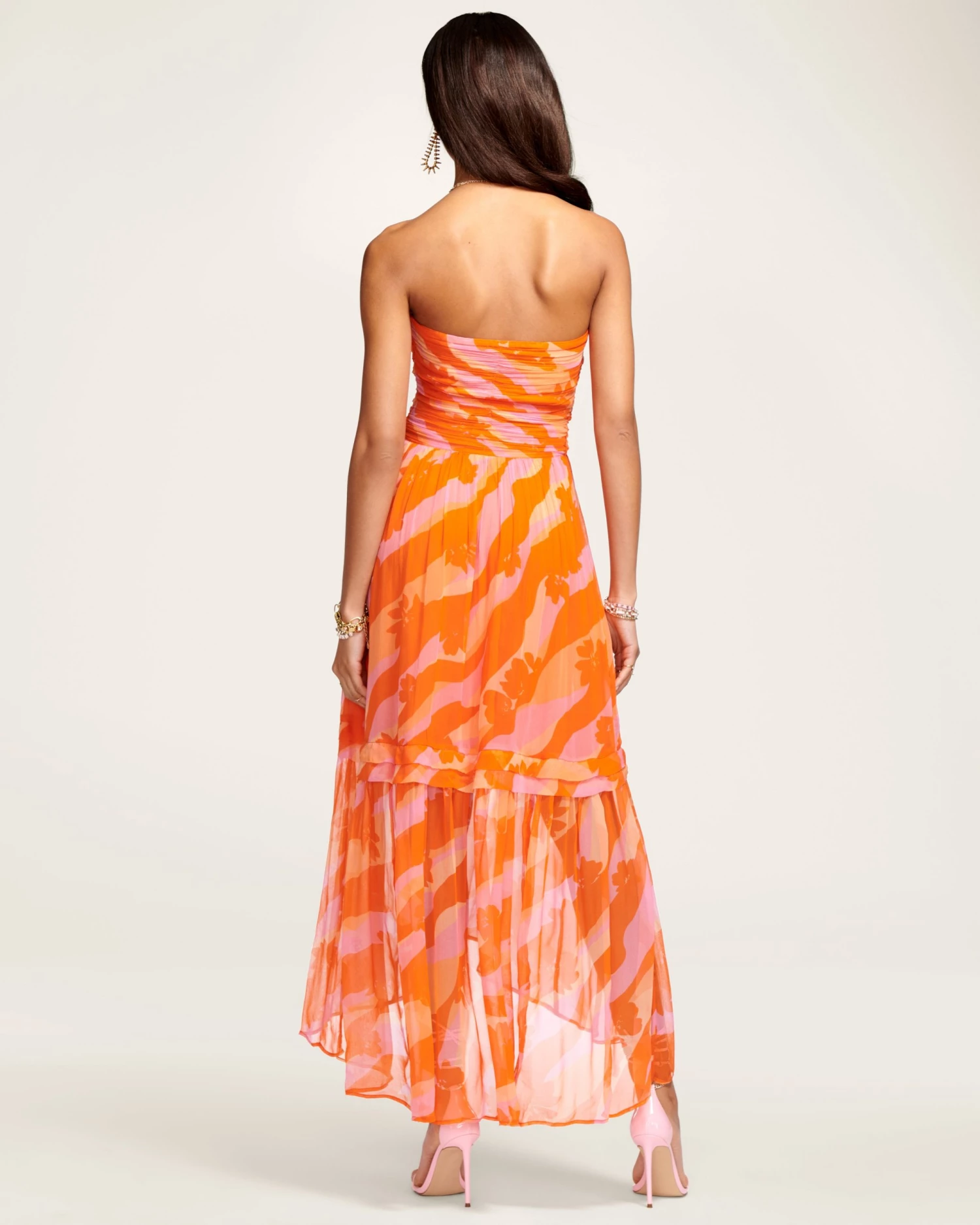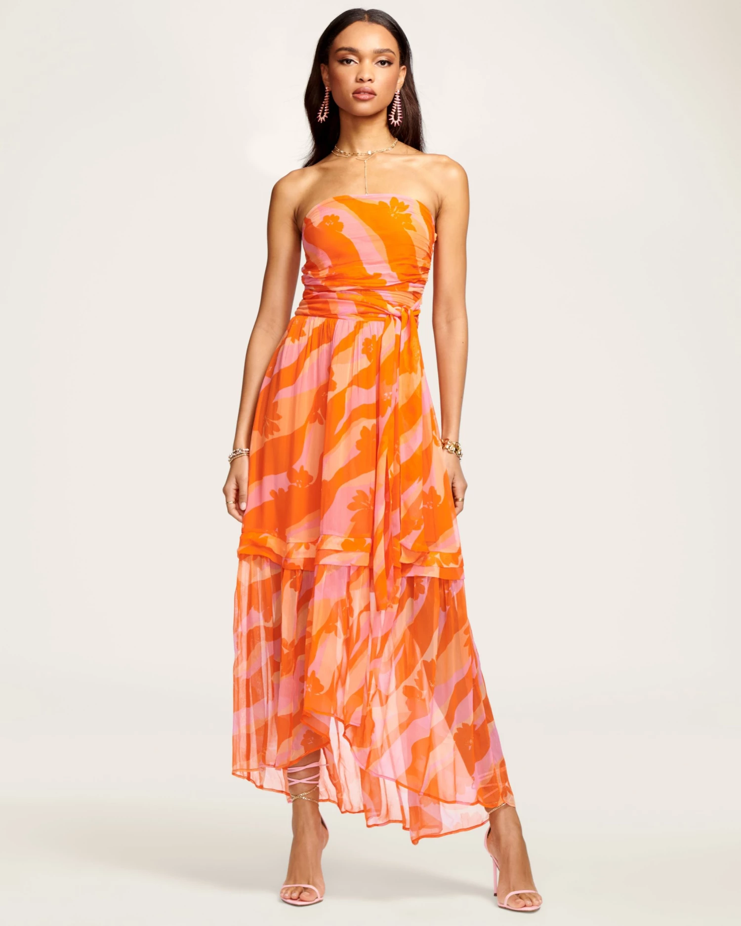 Make the most of your next cocktail event with our Printed Bernadette Dress, a sweet yet sexy piece brimming with elevated details. The multi tonal graphic print amplifies this stunning silhouette, classic with a strapless bodice, adjustable ruched waist and pleated asymmetrical skirt. Step into your favorite stiletto and move in high-fashion style.