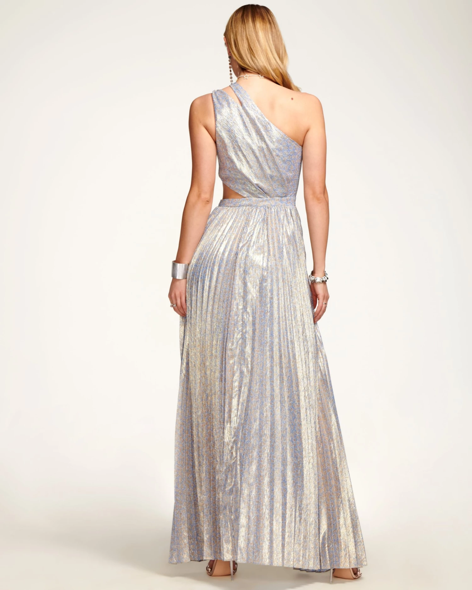 You’re sure to be the best dressed guest in our stunning Roman Dress, a modern evening gown crafted in luxe lame. The one shoulder bodice has shoulder and waist cut outs to reveal an alluring sliver of skin, and the pleated skirt channels Hollywood glamour with every step. Pair with your favorite heels and make a noteworthy entrance.