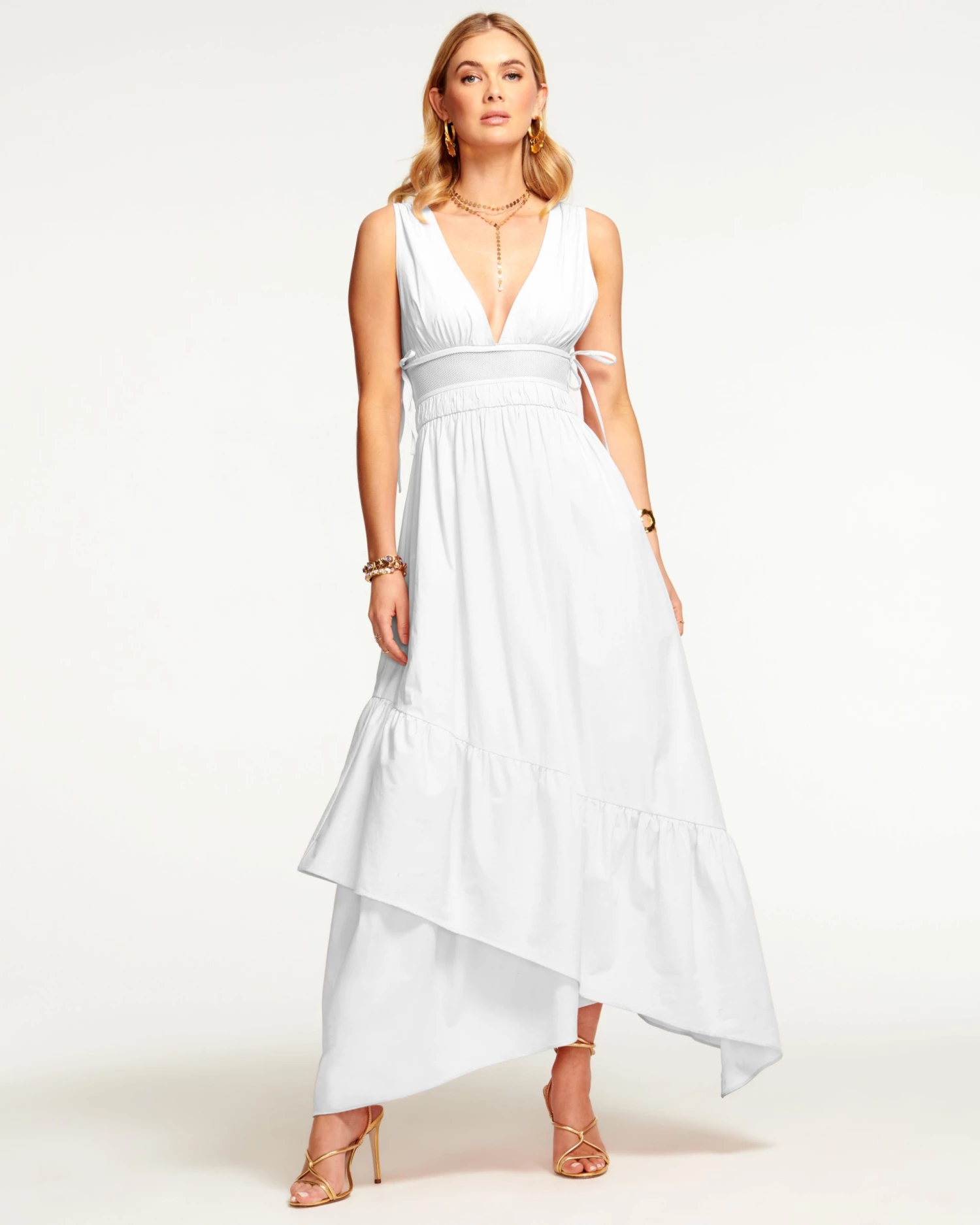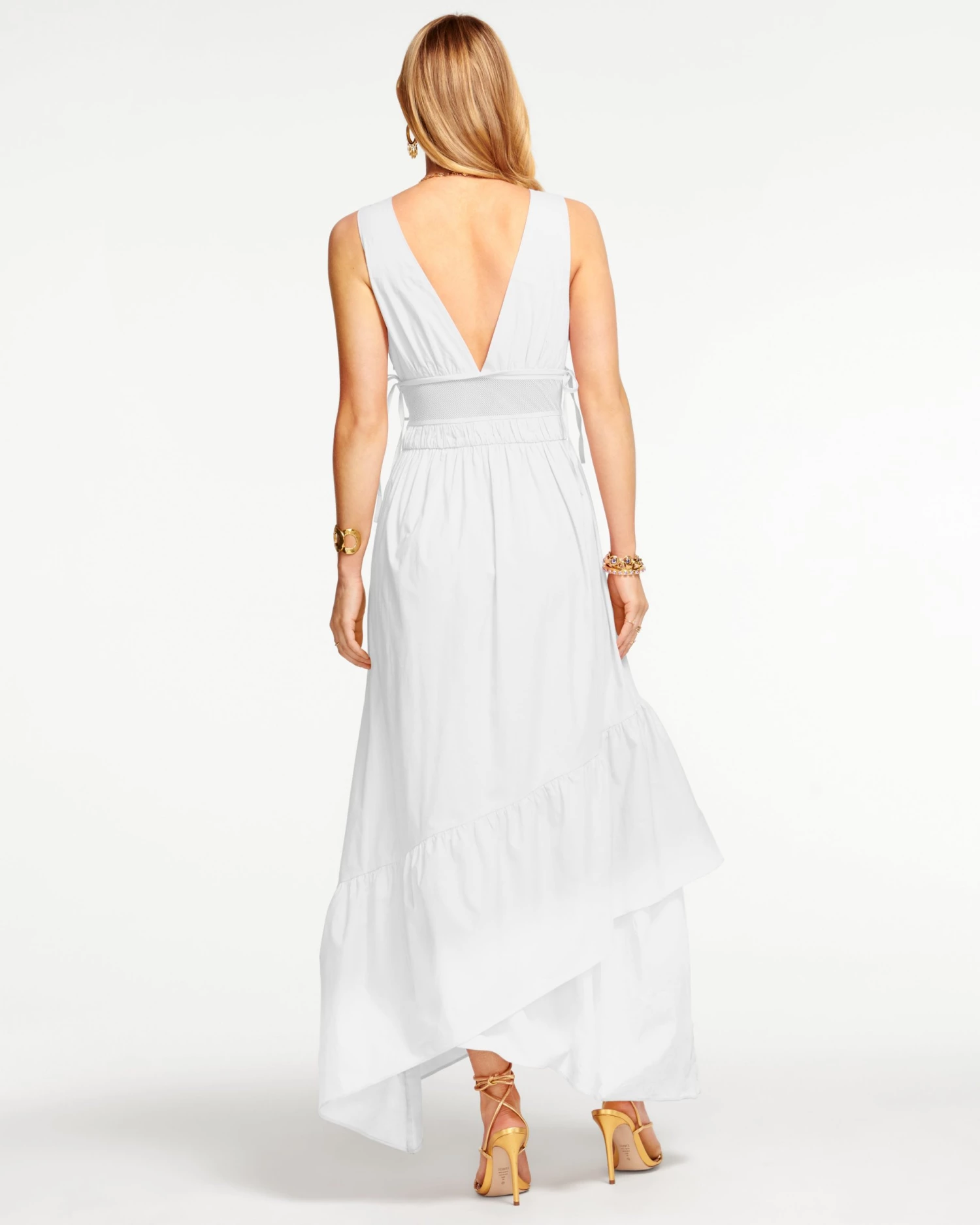 Give sweeping hemlines the Ramy-approved makeover with our modern Vendala Dress crafted in the best of cotton poplin. Not your average maxi, this v-neck frock reveals a subtle flash of skin with the mesh waist detailing, a fun take on a classic style. The tiered skirt is the finishing touch that makes this dress truly transformational; simply step into the shoe best suited for your day and you’re sure to put your best foot forward.