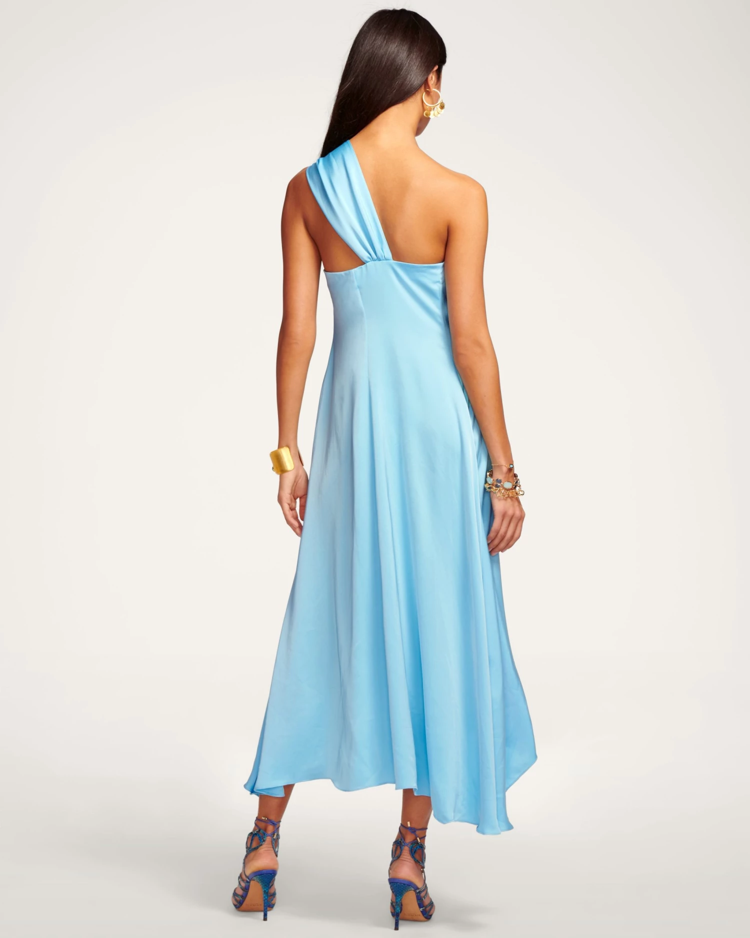 Made for the modern goddess we know you are, our one shoulder Willow Dress takes the power of the column dress and adds a touch of ease. Made in our silky satin charmeuse, this dress drapes into a beautiful handkerchief skirt to optimize movement for every step ahead.