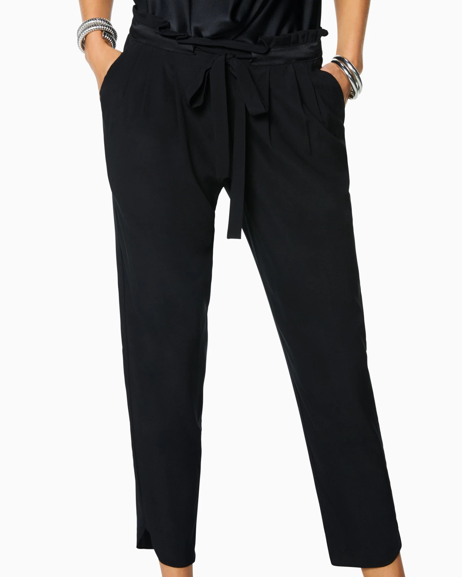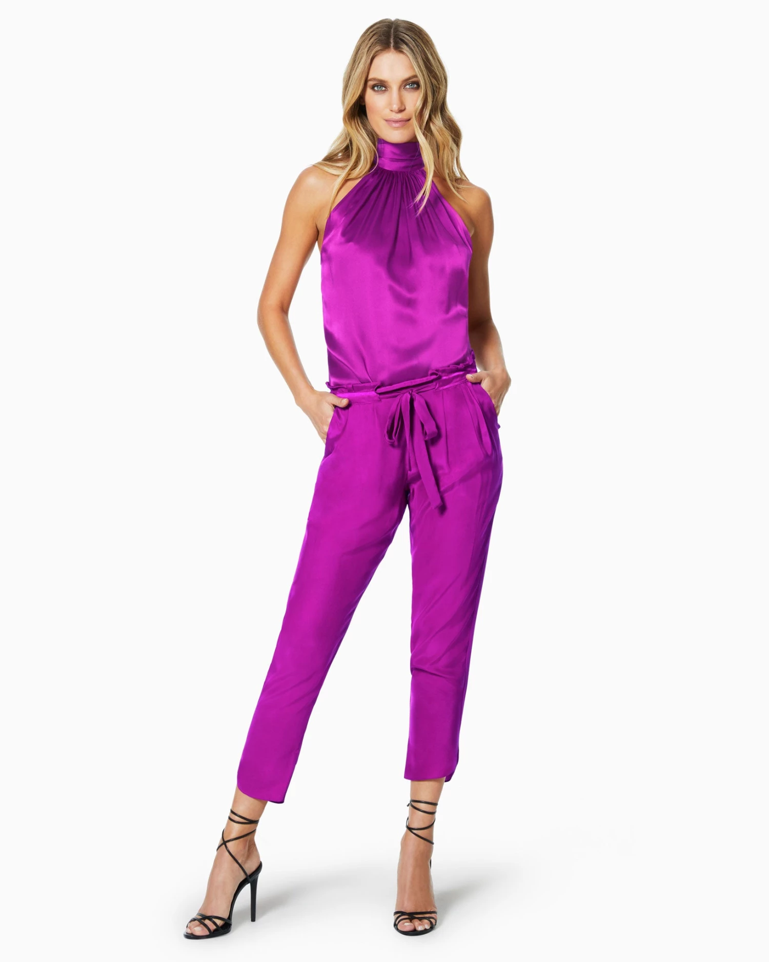 Our Allyn pant starts off with a relaxed tie waist and transitions into a perfectly tailored leg, proving that comfortable and chic were meant for each other. This must-have style plays very well with the matching Lori top and your strappiest stiletto.