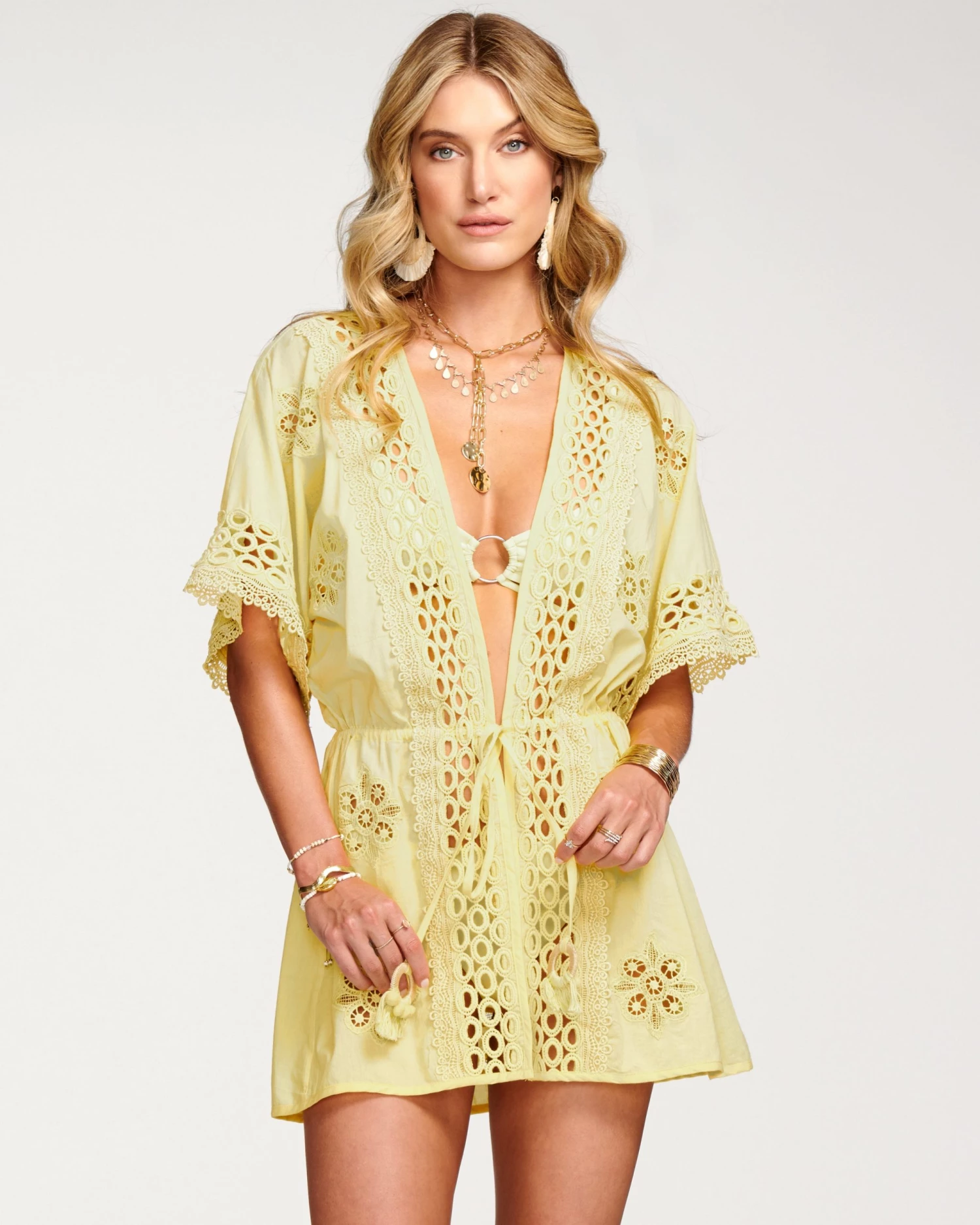 Send boring cover ups packing with Delphine, a cotton cover up that’ll be your beach day bestie. Light and airy with circular embroidered details, this cover up cinches at the waist with an adjustable strap, ideal for showing off enviable curves.