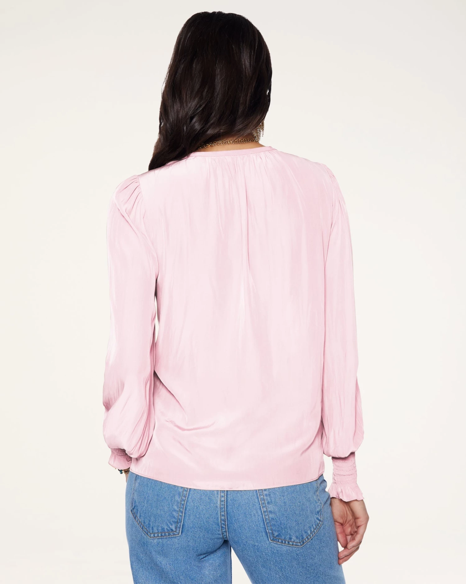 A silky little darling, the Isla Top is a must-have this spring. Crafted from supple Crepe de Chine fabric that radiates in motion, the Isla Top features a smocked neckline and billowing, ruffle-trimmed sleeves. Leave a few buttons undone and add a layer of jewelry for dinner or a romantic date night.