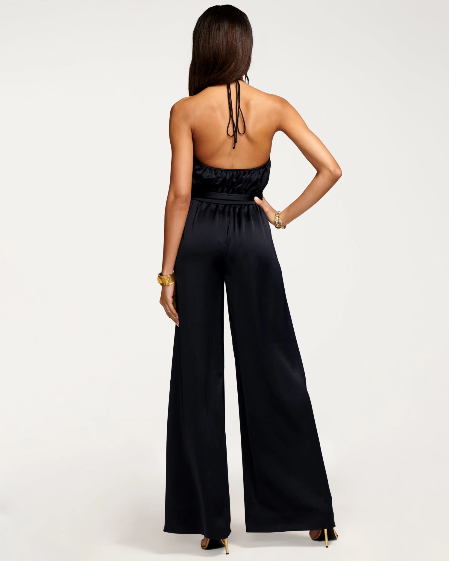 For a look that’s out of this world, look no further than our Pluto Jumpsuit, a stretch satin power piece you’ll stand tall in. The angular metallic neck piece ties together the halter neckline, while the open back design keeps the attention on your summer skin. Wrapped around the waist with a luxe detail, this is a style you’ll be over the moon for.