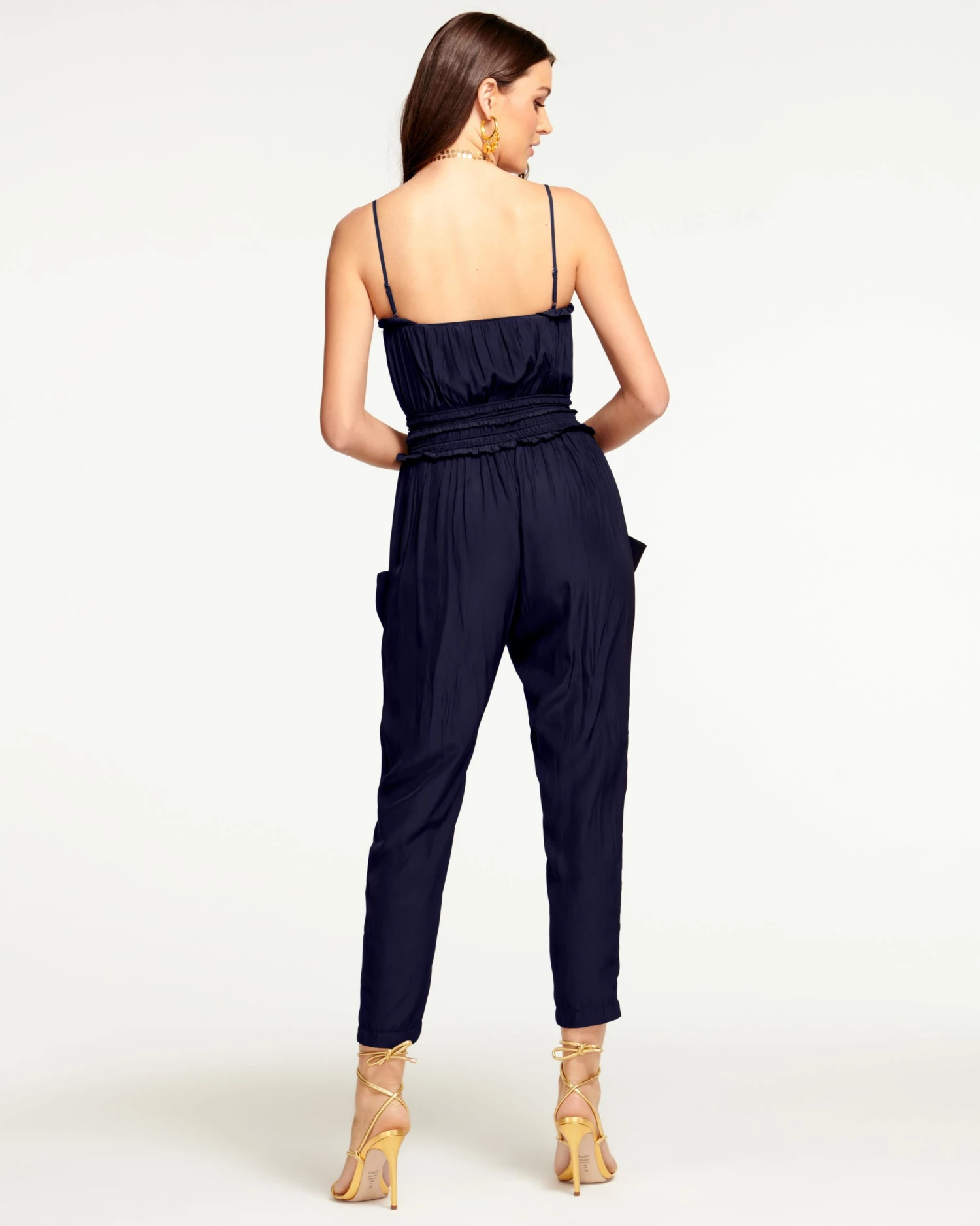 Allow our fashion-forward Starr Jumpsuit to kickstart your spring wardrobe! This fabulous design can be worn with spaghetti straps on the shoulder or tucked in for a convertible neckline, which looks gorgeous either way when contrasted against the flounced waist. Designed in our flattering Japanese tech fabric, the pocketed tapered pants hit at the perfect length to create a stunning silhouette you’re sure to stand tall in.