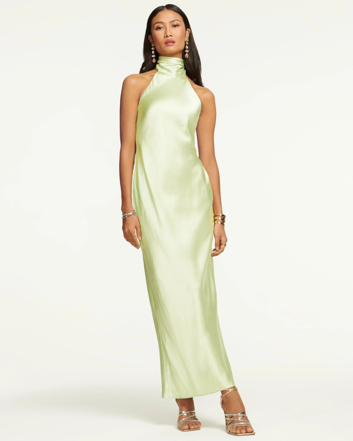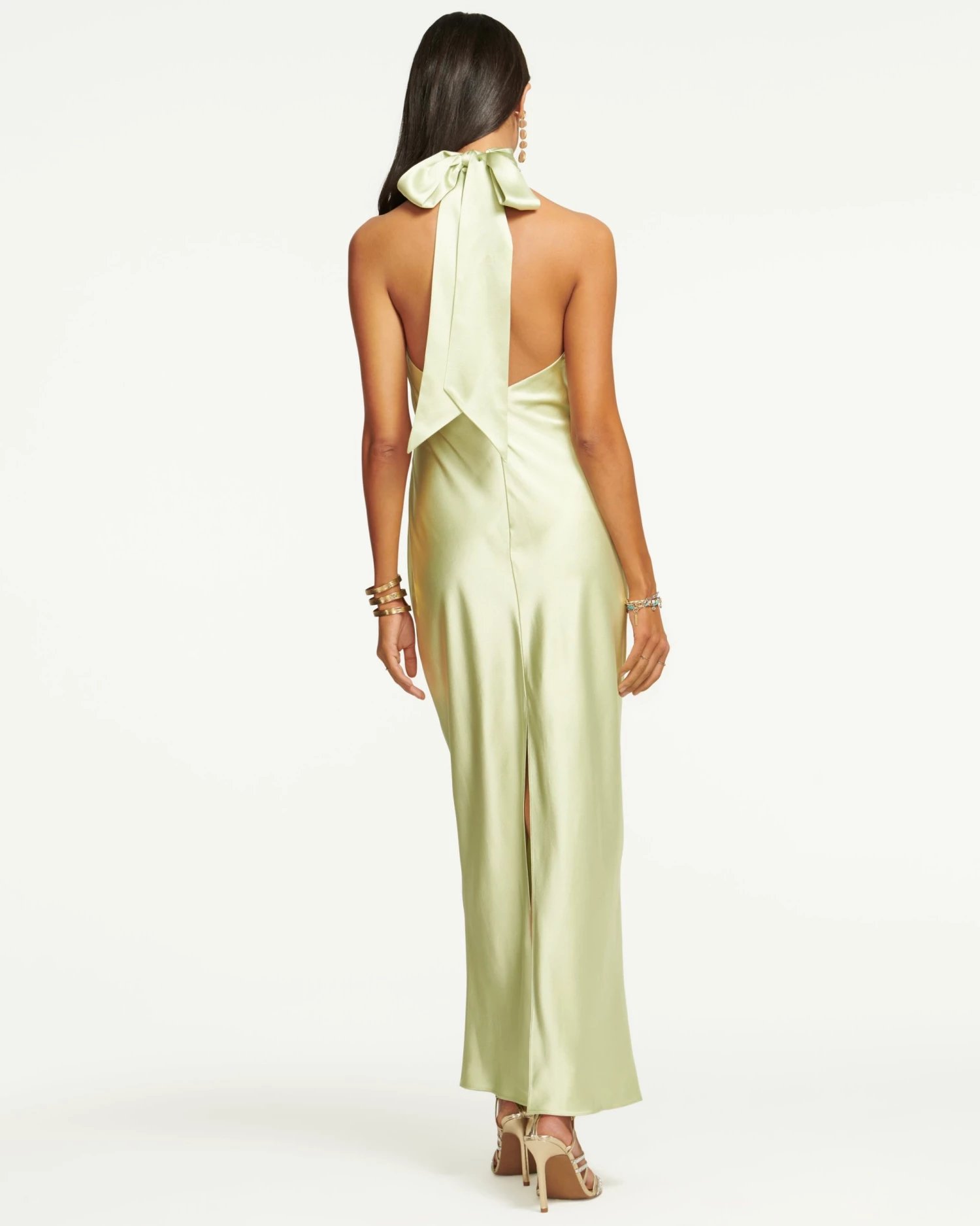 Any night out in our Exclusive Tatiana Dress is sure to be memorable. This stunning floor length gown offers a flattering and snug fit thanks to the stretch satin fabrication. The high ruched neckline ties at the neck, and a mid-song twirl will show off the red-carpet worthy bow, plunging back and discreet center split that optimizes movement so you can strut into any room in style.